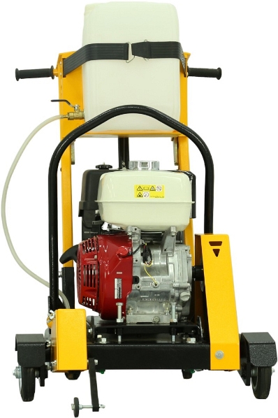 - Бензиновый двигатель Honda GX390 обеспечивает необходимую автономность работ в полевых условиях: в обычном режиме работы при глубине прямоугольного реза 6 см и ширине 1 см достигается скорость 1 м/мин по асфальту и 0,5 м/мин по бетону