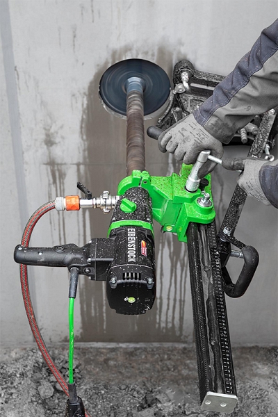 - Компактный двигатель для самых тяжелых работ при серийном сухом и мокром сверлении отверстий Ø до 182 мм