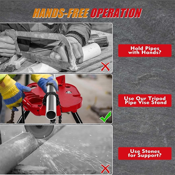 - Бесперебойная работа: можете легко выполнять задачи обеими руками, надежно удерживая трубу – позволяет сосредоточиться на резке, нарезании резьбы или сборке с повышенной точностью и эффективностью