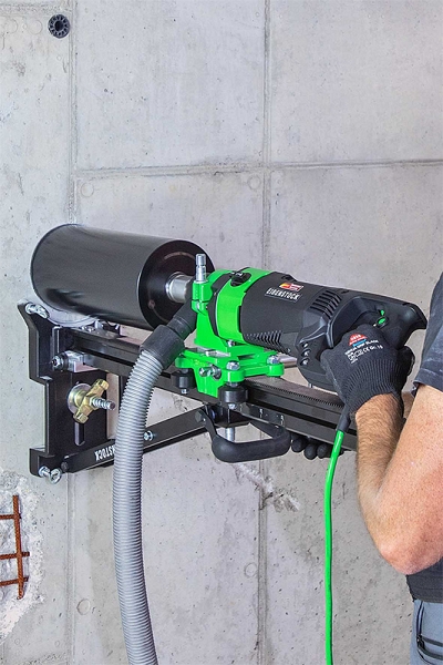 - Ручное и стационарное сверление отверстий в стенах и потолках систем водоснабжения, отопления и вентиляции, где мокрое сверление невозможно (в случаях, когда сверление с использованием воды невозможно)